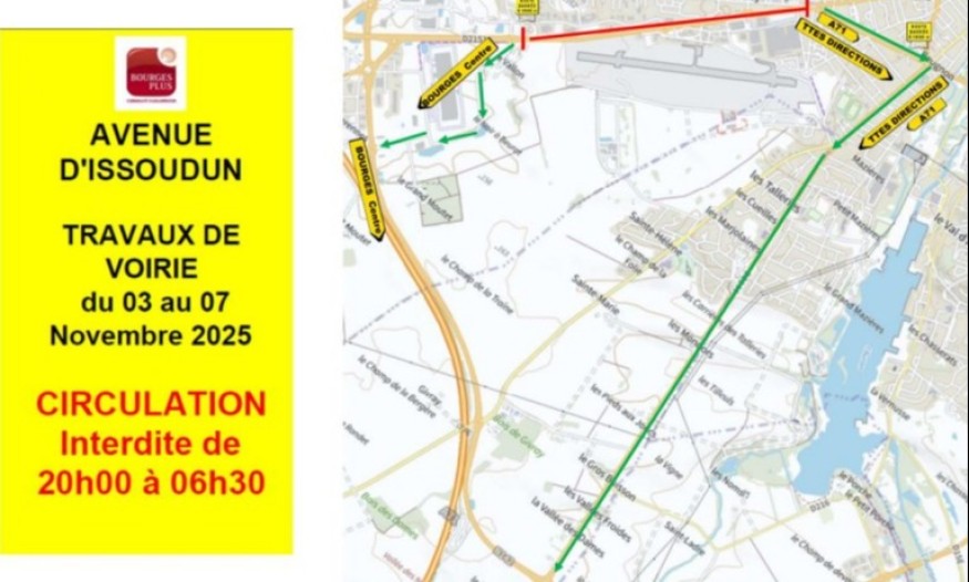 Radio Numéro 1 - À partir de ce lundi 3 novembre et jusqu’au vendredi 7 novembre, la circulation sera fermée entre 20 h et 6 h 30 sur l’avenue d’Issoudun à Bourges, en raison d’une nouvelle phase de travaux menée par Bourges Plus.