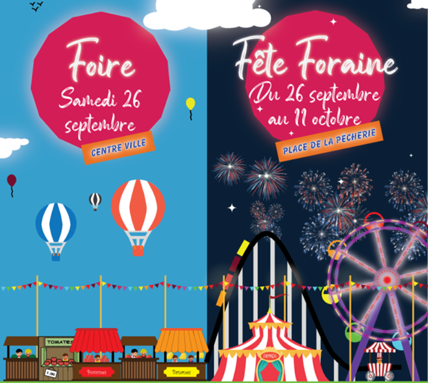 Sans oublier, la fête foraine qui se tiendra jusqu'au 11 octobre place de la pêcherie. Ouverture les mercredis après-midi et les week-ends.