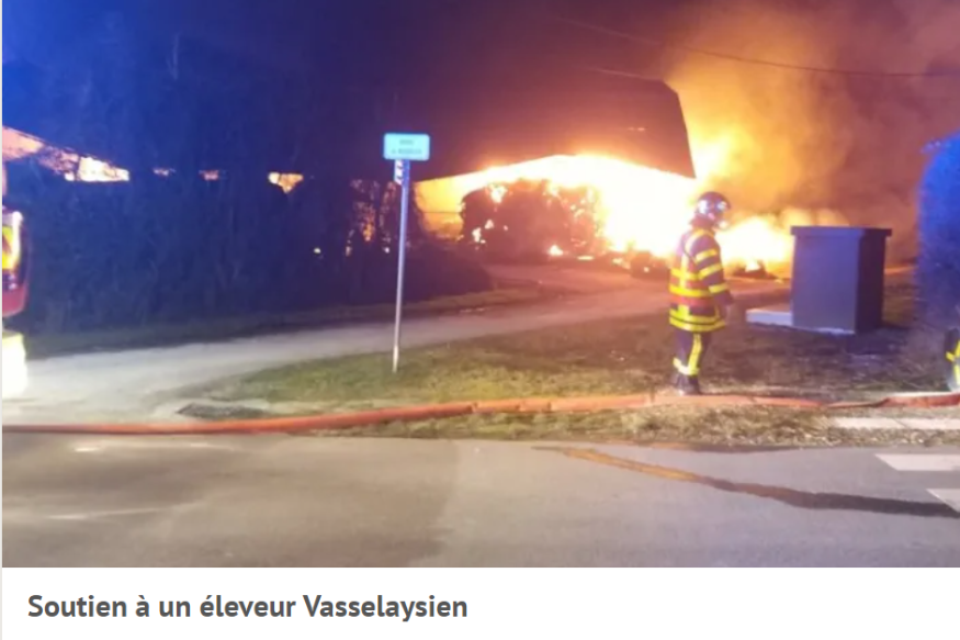 Dimanche 13 février, un incendie a détruit le hangar d'un agriculteur de Vasselay. Un drame qui a aussi coûté la vie aux seize vaches qui étaient à l’intérieur, ainsi que le stock de paille. En trois mois, c'est la troisième fois que la commue de Vasselay est touchée par un incendie. Une enquête de gendarmerie est ouverte.